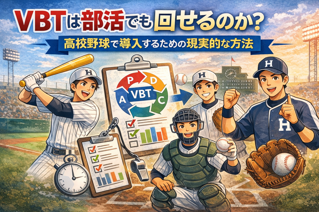この記事では、 VBTは部活でも回せるのか をテーマに、 高校野球で導入するための 現実的な考え方、 始め方、 失敗しにくい運用方法 を、 現場目線でわかりやすく整理します。