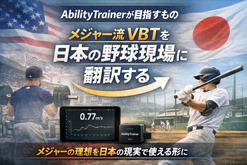 先に結論を言うと、 AbilityTrainerが目指しているのは、 メジャーで使われているVBTの考え方を、 日本の野球現場でも実際に使える形に変えること です。