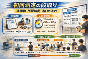 VBTを現場で始めるとき、 つまずきやすいのが 「初回測定をどう回せばいいのか分からない」 という点です。 機材そのものは用意できても、 当日は何を準備し、 どれくらい時間がかかり、 どんな順番で進めればよいのかが曖昧だ […]