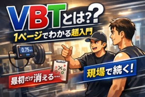 VBTを導入した最初の1ヶ月は、 機器の精度や細かい分析以上に、 「何を基準に運用するか」 を決めること が重要です。 ここが曖昧なまま始めると、 現場では毎回見る数字が変わったり、 測る頻度がぶれたり、 せっかく取った […]
